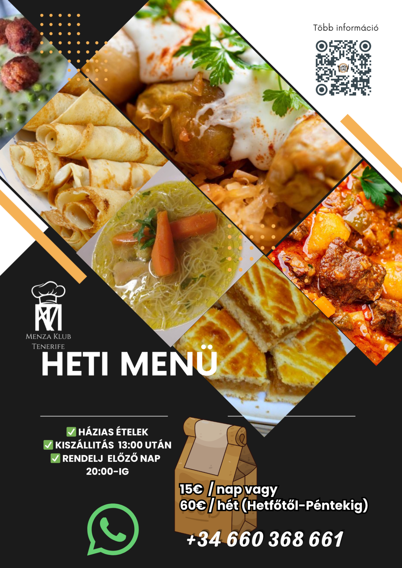Rendeld meg heti bérletként – és spórolj minden nap! Rendeld meg előre hétfőtől-péntekig , és spórolj naponta 3 €‑t – így csak 60 €/hét a korábbi 75 € helyett! Miért válaszd? Egyszeri rendelés, hétre szóló étel ellátás Kiszállítás logisztikailag optimalizálva Egyszerű, gyors rendelés – nincs napi kattintás Minden nap friss, házias menü képekkel, leírásokkal Rendelje meg heti bérletünket most – élvezze a jó ízeket, tervezhetően és kedvező áron! Most akciós: napi 15 € helyett csak 12 €/nap , így hétfőtől‑péntekig (5×12 € = 60 €) . Ételeink egész hétre előrendelhetők – egyszerűen, gyorsan, kedvező áron.